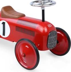 Den røde VILAC Vintage løber skiller sig ud med tidløst retrodesign og en holdbar metalkonstruktion. Børn lærer nemt balance, koordination og deres første kørefærdigheder takket være rattet, som virkelig drejer forhjulene. De gummibelagte hjul giver stille og jævn kørsel på hårde underlag, hvilket gør den ideel til både lejlighed og terrasse.