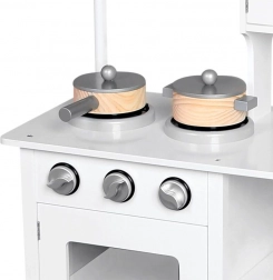 Pakken indeholder også et sæt gryder, en grydeske og en gaffel, som udvider legeoplevelsen.