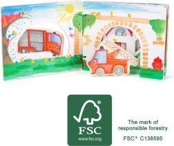 Med træbogen Brandmænd dykker børn ned i brandmændenes actionfyldte verden. Bogen er udstyret med træfigurer, som inspirerer til at finde på egne historier. Efter at ilden er slukket, kan børnene lægge figurerne tilbage i bogen, hvilket lærer dem grundlæggende orden og ansvar.