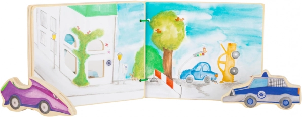 Denne træbog er ideel til børn fra 1 år. Den er lavet af 100% FSC-træ, hvilket sikrer et miljøvenligt og ansvarligt materialevalg. Bogen indeholder: