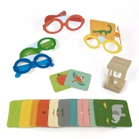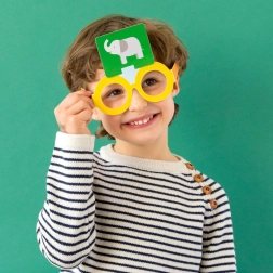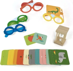 I æsken finder du alt, hvad du behøver: 4 justerbare briller med kortholder, 50 robuste kort med søde illustrationer og et timeglas for tempo i spillet. Kvalitetsmaterialer af genbrugspapir og tryk med plantebaserede farver opfylder alle sikkerhedsstandarder.