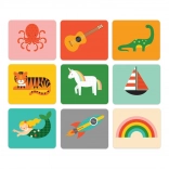 Farverige og tydelige billeder af dyr, genstande og transportmidler gør det lettere at gætte – også for yngre spillere.