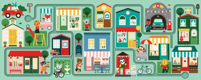 Træd ind i en underholdende verden med puslespil By, der tilbyder en innovativ tilgang til leg. Indeholdende 10 store brikker, som børn nemt kan samle for at skabe et billede af en travl by.