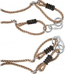 Nylonreb med metaløjer, ringe og sikkerhedskarabiner sørger for hurtig, solid og sikker ophængning.