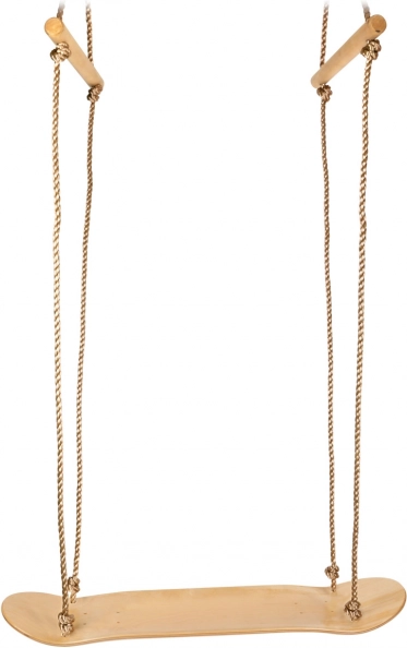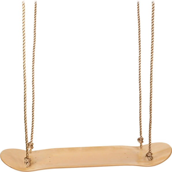 Oplev både sjov og balancetræning med denne trægynge formet som et skateboard. Børn kan sidde eller stå som på et rigtigt board, og sikkerheden øges med justerbare håndtag og en skridsikker klæber. Solid krydsfiner, holdbare nylonreb med metaldele og en maksbelastning på 100 kg sikrer lang levetid både inde og ude.