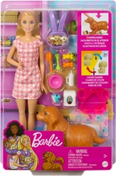 Velkommen til Barbies vidunderlige verden og ankomsten af nye hvalpe! Dette sæt giver børnene mulighed for at hjælpe Barbie og hendes tæve med at byde tre søde hvalpe velkommen. Du skal blot trykke på ryggen af hundemor, og én efter én vil de små hvalpe dukke op. Efter fødslen kan du fylde en skål med koldt vand og bruge et håndklæde til at afsløre specielle detaljer på hver hvalp.