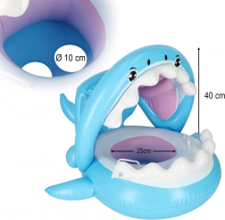Oppustelig børnestol til vand med baldakin – haj, op til 23 kg