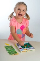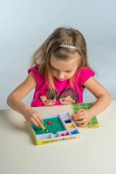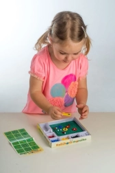 Denne mosaik er et godt valg til det første kreative arbejde. Børn bruger pincetten til at lægge farvede kugler i pladen og skaber enkle og fantasifulde motiver. Aktiviteten støtter tålmodighed, øje–hånd-koordination og udvikling af finmotorik.