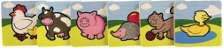 Hver brik har en klar, letforståelig illustration (kylling, ko, gris, pindsvin, kat, and m.fl.), som støtter læring og leg.