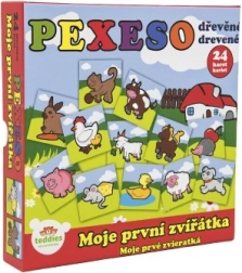 Træ-memo – Mine første dyr TEDDIES er et smukt illustreret huskespil til børn. Brikkerne af kvalitets-træ ligger godt i hånden, er holdbare og de klare farver samt de søde dyremotiver fanger straks børnenes opmærksomhed. Spillet lærer at genkende former og farver og udvikler logisk tænkning og tålmodighed.
