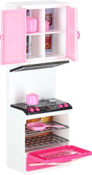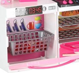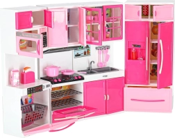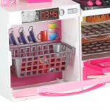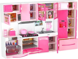 Dette moderne dukke-køkken bringer børn ind i en fantasiverden og efterligning af hverdagsaktiviteter. Fire forbundne segmenter gør det muligt at samle et komplet køkken med alle vigtige elementer – fra komfur med ovn til køleskab og vask. LED-belyste blus og lyde giver madlege en realistisk fornemmelse.