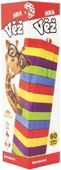 Klassisk trætårn er ideelt for alle aldersgrupper. Med 60 farverige brikker kan du bruge timer på sjov både indendørs og udendørs.