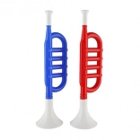 Denne lette og holdbare plasttrompet er et fremragende valg til børns første møde med musikinstrumenter. Takket være den venlige størrelse på 34 cm ligger den godt i hånden selv på mindre børn og gør det nemt at blæse de første toner. Det farverige design og den enkle betjening motiverer til at spille og udvikler musikalsk sans og koordination.