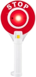 Denne politistav af plast er udstyret med et indbygget lys, der lyser rødt på den ene side og grønt på den anden side, hvilket lærer børnene grundprincipperne for vejtrafik.
