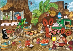 Den glade illustration med Muldvarpen og hans venner i køkkenet er fuld af detaljer, der underholder børn og stimulerer deres fantasi.