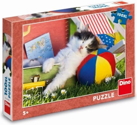 Det farverige billede af en sovende killing med en bold motiverer børn til at lægge puslespil og pynter på ethvert børneværelse.