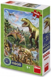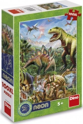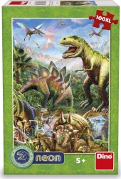 Opdag dinosaurernes verden gennem dette utrolige neonlysende puslespil! Dit barn vil nyde sjov samling med neonelementer, der lyser op i mørket og viser konturerne af dinosaurer sammen med et dramatisk bjerglandskab i baggrunden.