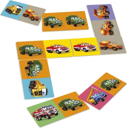 Domino DINO TATRA introducerer børn til de legendariske tjekkiske lastbiler og specialkøretøjer. Når de parrer billeder, træner de legende deres koncentration, iagttagelsesevne og logiske tænkning. Takket være den kvalitetsmæssige karton er spillet let, kompakt og velegnet til rejser, så det underholder både hjemme og på ture.