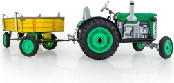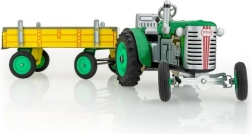 Denne unikke traktormodel drives af en fjederdrift optrukket med nøgle, der tilføjer en autentisk dimension til legen. Den funktionelle gearkasse med tre fremadgående hastigheder og en bakgear giver børnene mulighed for at manipulere modellen realistisk. De kan styre med rattet og anvende håndbremsen til stop. Med en skala på 1:25 gengiver denne model præcis detaljerne fra en ægte traktor, hvilket gør den ikke alene til et fantastisk legetøj, men også til et samleobjekt.