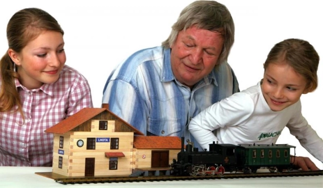 Dyk ned i modelbygningens verden med et byggesæt, der indeholder alt, hvad du behøver for at skabe en detaljeret togstation i skala 1:45. Med træstave med tværsnit 9×9 mm, kartonudstansninger til vinduer og døre samt andre komponenter skaber du autentiske landskabselementer.