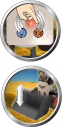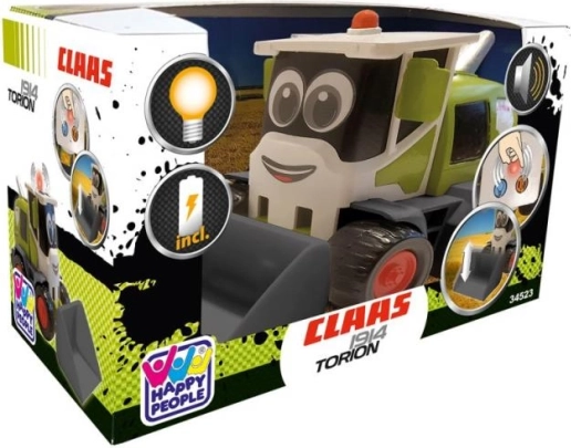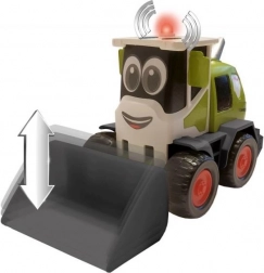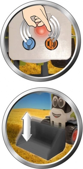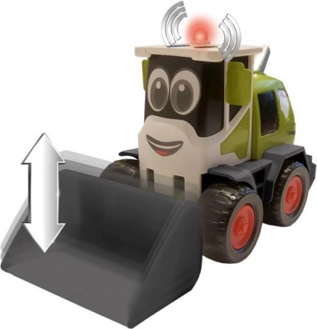 Denne søde CLAAS Mini-læssemaskine i grøn med sorte hjul og røde detaljer glæder de mindste med realistiske funktioner. Når knappen trykkes, afspilles motordlyd, og advarselslys tændes. Den manuelt betjente skovl gør det nemt at løfte og sænke og støtter den fine motorik.