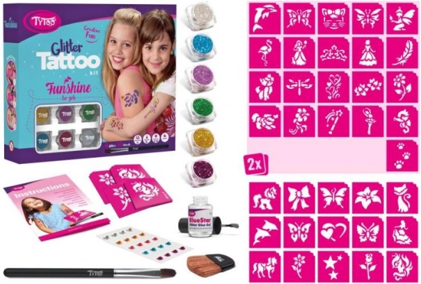 Med dette store glittersæt skaber du smukke og sikre huddekorationer på få minutter. Den større pakke indeholder også praktiske tilbehør som bevægelige øjne og selvklæbende sten, som gør det let at pynte det færdige motiv. Påfør blot en lille mængde lim på stenen, pres mod huden og lad tørre.