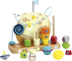 Dette stjernespækkede trælegetøj fra Vilac tager børn med til en intergalaktisk verden, hvor de kan stable planeter, tælle og skubbe stjerner langs en tråd. De gennemtænkte elementer understøtter udvikling af finmotorik, logisk tænkning og farveopfattelse.