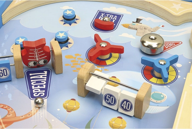 Nyd klassisk underholdning med den store træ-pinball fra VILAC med undervandstema. Robust konstruktion, 3 metal kugler, følsomme flippere og målskiver med point giver timevis af aktiv leg, udvikling af finmotorik og hånd-øje-koordination. Takket være de klapbare ben kan du indstille den ideelle banehældning og udfordre familie og venner i kampen om det højeste score.