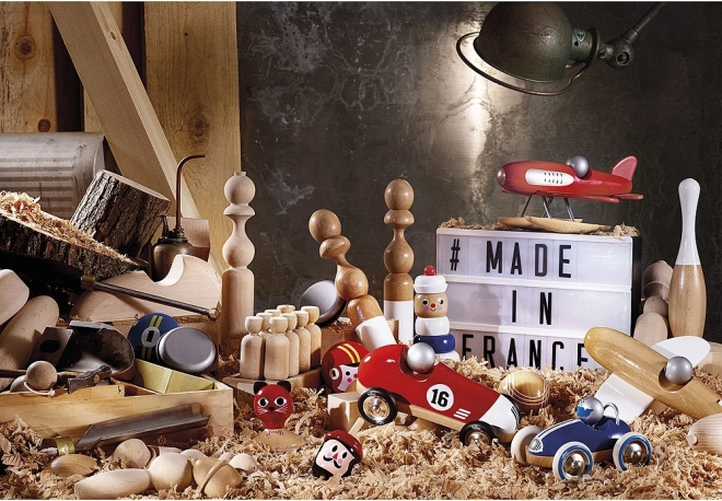 Legetøjet er lavet af lakeret træ og tilbyder dermed ikke kun holdbarhed, men også et behageligt udseende. Fransk håndværk leverer kvalitets- og sikkerhedsprodukter.
