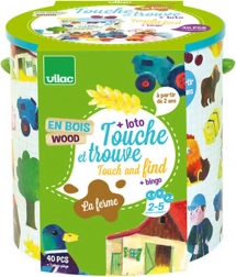 Spillet Vilac Føl og Find - Gård er ideelt til at udvikle finmotorik og følesans hos børn. Spillerne skal ved hjælp af berøring gætte, hvilke genstande der er i spanden. For ældre børn tilbyder spillet en udgave af lotto eller bingo med de medfølgende billedkort.