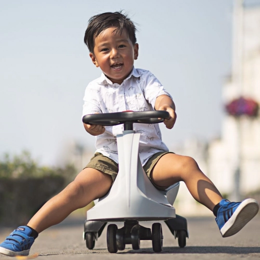 Sæt i gang blot ved at dreje rattet fra side til side. Den intuitive bevægelse styrker koordinationen og er sjov for både børn og voksne.