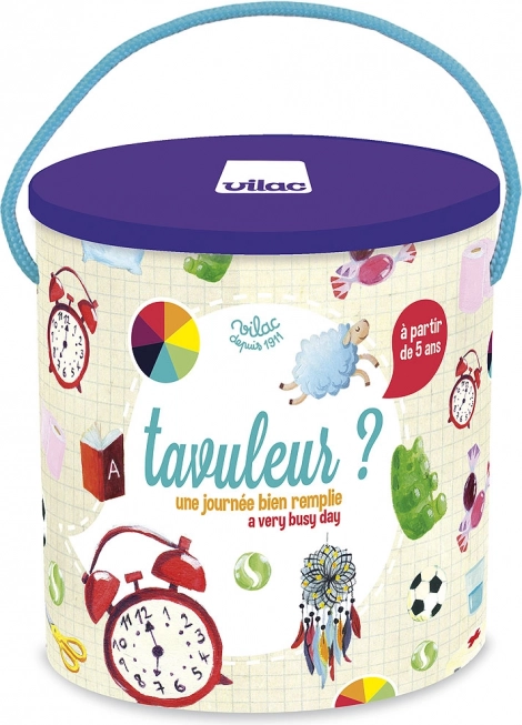 Vilac giver børn en udfordring i, hvordan de bedst kan fylde deres dag. Dette spil lærer ikke kun at aflæse tiden på en klassisk urskive, men udvikler også andre kognitive evner på en passende måde. Under legen kan børn lære at genkende former og farver og samtidig øve koncentration, når de samler den runde urskive af skiver.