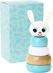 Vilac Kanin stabeltårn er et stilfuldt legetøj, som vil glæde både børn og forældre. Med de solide træringe træner børn finmotorik, tålmodighed og logisk tænkning. Det minimalistiske look med retropræg af den svenske illustrator Ingela P. Arrhenius gør det også til en smuk detalje på børneværelset.