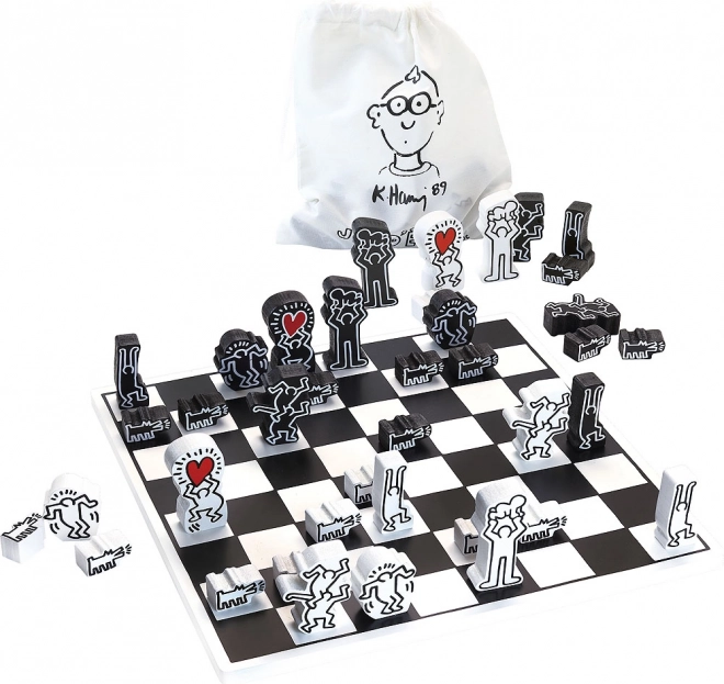 Der medfølger en tekstilpose med KEITH HARING-motiv til sikker og nem transport samt opbevaring af brikkerne.