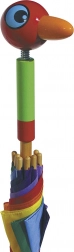 Det ergonomiske, lakerede træhåndtag formet som en and sikrer et behageligt greb og giver paraplyen et unikt udseende.