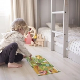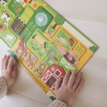 Udforsk gårdens verden med et kreativt sæt, der kombinerer puslespil og sjov findeting-leg. Når det lange puslespil er samlet, følger børn stierne med fingeren, træner hånd–øje-koordination og leder samtidig efter 20 genstande på billedet. En ideel aktivitet til hyggestunder sammen eller til selvstændig leg.