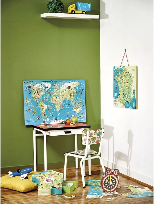 De didaktiske træure fra VILAC introducerer børn til tid på en legende måde. Den analoge urskive suppleres af en skive, der efterligner digital visning og gør orienteringen lettere. Begge visere og skiven er forbundet med præcise gear, så mekanikken trofast svarer til et rigtigt ur – det hjælper med bedre at forstå forholdet mellem minutter og timer.