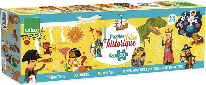 Udforsk historien på en legende måde med en samling af fire store træpuzzles, der skildrer vigtige begivenheder fra forhistorisk tid til nutiden. Hvert puzzle har 100 brikker, og tilsammen danner de en lang tidslinje. Ideelt til børn fra 6 år, som vil lære på en sjov måde og træne både logisk tænkning og finmotorik.