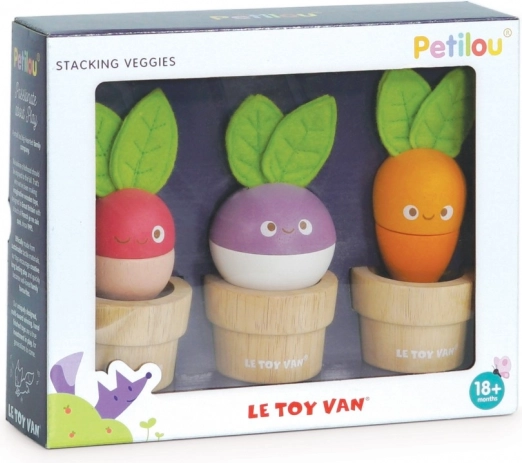 Det søde sæt af træblomsterpotter med grøntsager fra LE TOY VAN understøtter finmotorik, hånd-øje-koordination og fantasi. Børn kan mixe og matche de enkelte dele til en gulerod, ræddike og rødbede eller skabe deres egne kombinationer. Legetøjet er lavet af bæredygtigt træ, har blade af filt og er håndmalet med giftfri vandbaserede farver.