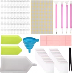 Hold orden og komfort under kreativiteten med dette komplette sæt til diamond painting i et hårdt etui. Indeholder alt, hvad du behøver for præcis påsætning af sten – fra en organizer med 60 beholdere, til doseringstragt, pincet og applikatorer i forskellige størrelser, samt bakker og voksblokke. Det kompakte hårde etui med hank beskytter udstyret og gør det nemt at transportere.