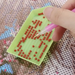 Dette praktiske sæt gør både organisering og selve processen lettere for enhver elsker af diamond painting. Alt er sikkert opbevaret i et robust etui med lynlås, inklusive overskueligt placerede beholdere i skumindsats og en netlomme til ekstra tilbehør. Med denne løsning har du altid alle sten og værktøjer ved hånden og perfekt sorteret.