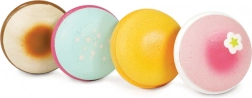 Dette elegante sæt med fire træmakroner i blide pastelnuancer er et perfekt tilbehør til legekøkken og teselskab. Legetøjet er håndeftermalet med miljøvenlige farver og lever op til strenge sikkerhedsstandarder, så børn kan nyde sikker og stilfuld leg.