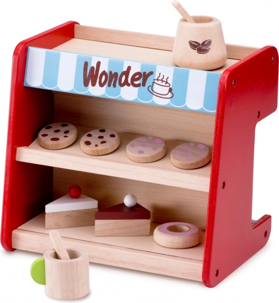 Desuden kan desserter leveret med sættet vises på hylder. Kaffemaskinen giver indtryk af et ægte kaffehusudstyr.