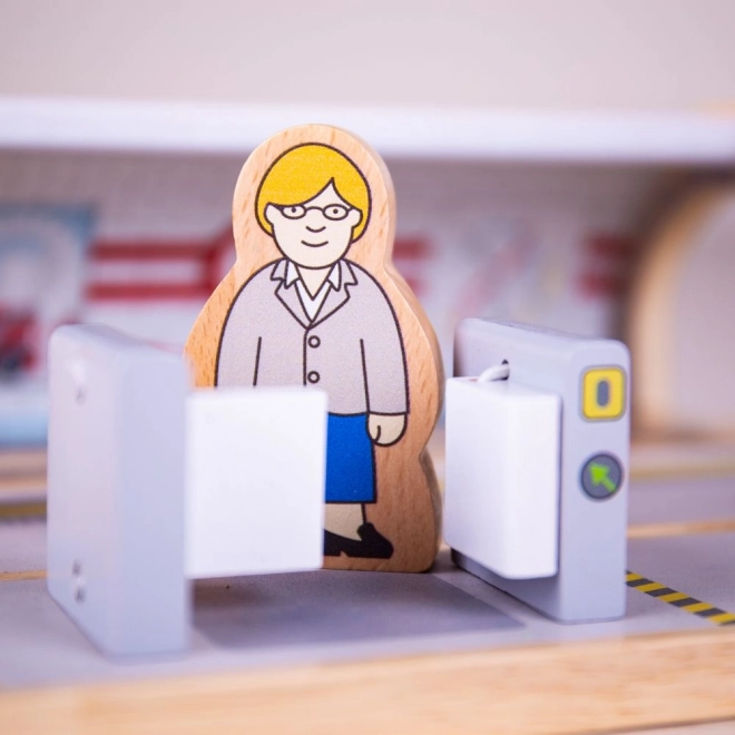 Detaljer som billetautomat, sluse/turniket og passagerfigurer skaber et realistisk miljø til leg med daglig transport.