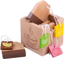 Sættet med træteposer er et ideelt tilbehør til legekøkkenet eller butik. De stiliserede poser med populære smage stimulerer kreativ leg og lærer børn bordskik og høflighed, når der serveres.