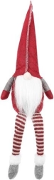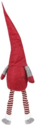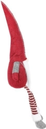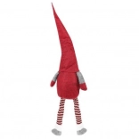 Julenissen i røde nuancer charmerer med sit legende udtryk – den høje spidse hue, det fyldige hvide skæg og de stribede ben bliver en iøjnefaldende sæsondekoration. Takket være den solide udførelse i filt og holdbar plast er den let, men stabil og klar til at pynte dit hjem hele vinteren.