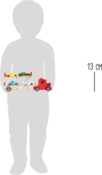 Pas på, der lastes! Denne robuste trælastbil med biler fra small foot transporterer op til fire sportsvogne ad gangen. Den har en bevægelig øverste platform for nem på- og aflæsning, en sikkerhedsbom mod tilbagerulning og en holdbar konstruktion af kvalitetstræ og metal – ideel til små bilfans og enhver børnebane.