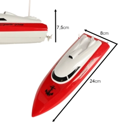 Denne lille, men kvikke RC-båd tilbyder intuitiv betjening og stabil sejlads på roligt vand. Takket være det robuste plastskrog og gennemtænkt aerodynamik er modellen let at styre og velegnet til børn. Strømmen leveres af en Ni-Cd 3,6 V 500 mAh akkumulator, som giver cirka 7–8 minutters sejlads pr. opladning.