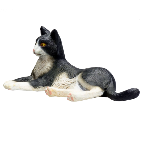 Den sort/hvide liggende kat fra Mojo-mærket er ideel for både børn og samlere. Denne figur blev udviklet i samarbejde med samlerfællesskabet og er licenseret af respekterede dokumentarister. Den er fremstillet af holdbar og ikke-giftig plastik, hvilket sikrer lang levetid og sikker leg.