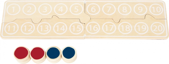 Det edukative regnebræt SMALL FOOT er et smart redskab til glædesfyldt læring i at regne fra 1 til 20. Farvede jetoner med forskellige farver på hver side hjælper børn med bedre at forstå addition og subtraktion, sortering og sammenligning af mængder. Naturligt træ med glat overflade er behageligt at røre ved og sikkert til daglig leg.